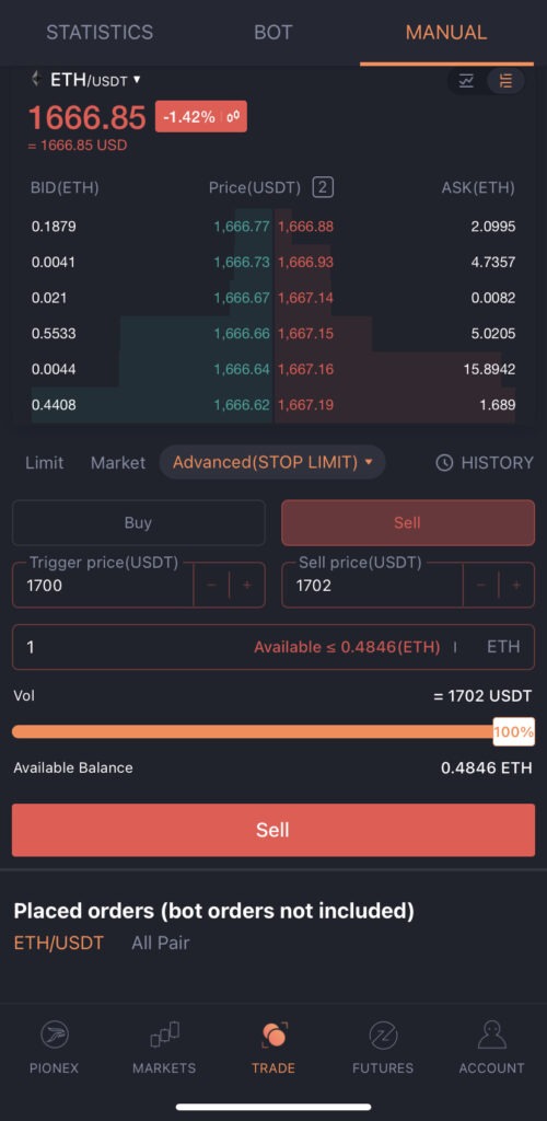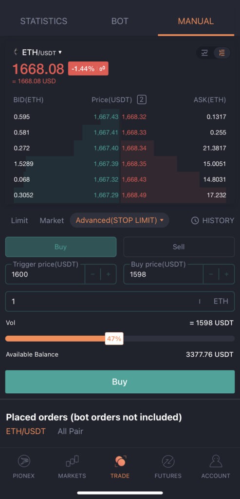 Cómo comprar y vender de forma manual en Pionex